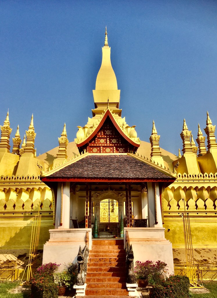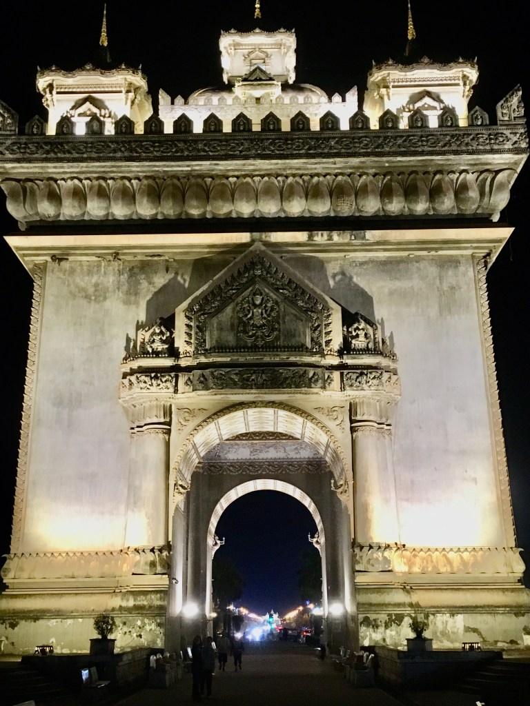I know right… that title pun is pretty Laosy. Anyway…on our last morning in Vietnam Helen did some writing and I went shopping, got a haircut and organised lunch. Almost like being back in Bath…just with a million motorbikes!! The afternoon was spent travelling, so not much to report apart from an encounter with an awful tourist. We arrived in Vientiane at 7 pm and visited the Patuxai Monument, which (loosely) resembled the Arc de Triomphe. It was built in 1962 but was never completed and an official sign outside read ‘from a closer distance it appears even less impressive, like a monster of concrete’. We thought this was a tad harsh and enjoyed our evening stroll.