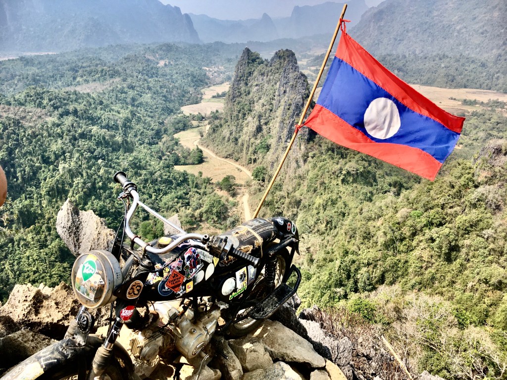 Day one in Vang Vieng started with a lovely breakfast of fruit (including delicious mango), eggs and rice before we set out to explore. The town is very dusty compared to Vientiane and a good few degrees hotter. An hour or so later we were at the top of a small mountain and were both sweating pretty hard. That being said the three viewpoints were spectacular and worth the climb (Phupha Daeng viewpoint for anyone who cares). We then set out for the equally hot Namxay viewpoint, which was even better. At the peak there are also motorbikes which made for an interesting photo!! Not bad for a morning’s work… Then, in a stroke of luck we discovered the Sae Lao restaurant, which is affiliated with the EEFA scheme (Equal Education For All). It’s a non-profit organisation dedicated to education (teaching English in four villages to ~500 students) health and sustainable development in Vang Vieng. A wonderful cause that we were able to support by using their restaurant.