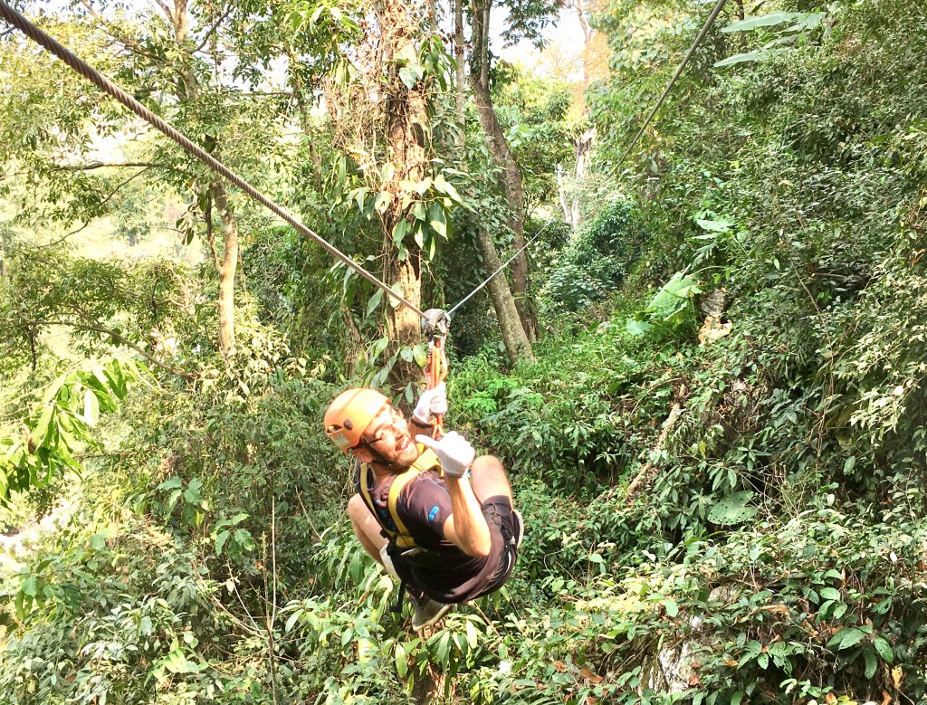 We have mixed feelings about doing tours, but after some successes in Vietnam on day two we signed up for an adventure day with TCK amazing tours (not known for their modesty). Our first stop was the Elephant Xayyalam Cave Temple, a cave that has a piece of rock that looked very loosely like an elephant. Luckily things picked up after that and we arrived at Tham Nam cave, where we jumped into inflatable tubes and floated inside the water cave pulling ourselves along with the aid of a rope. The water level was quite low when we visited but it was still a fun 20 mins! After lunch we took on a zip lining course and we sped over the treetops for an exhilarating hour, finishing with a terrifying plummet to the forest floor. Then to the Kayaks! We meandered down the river for an hour (Helen adopting her normal lady of leisure role), even navigating a few small rapids before finishing the day at Blue Lagoon (number 1) for rope swings and jumps. Another day in paradise.