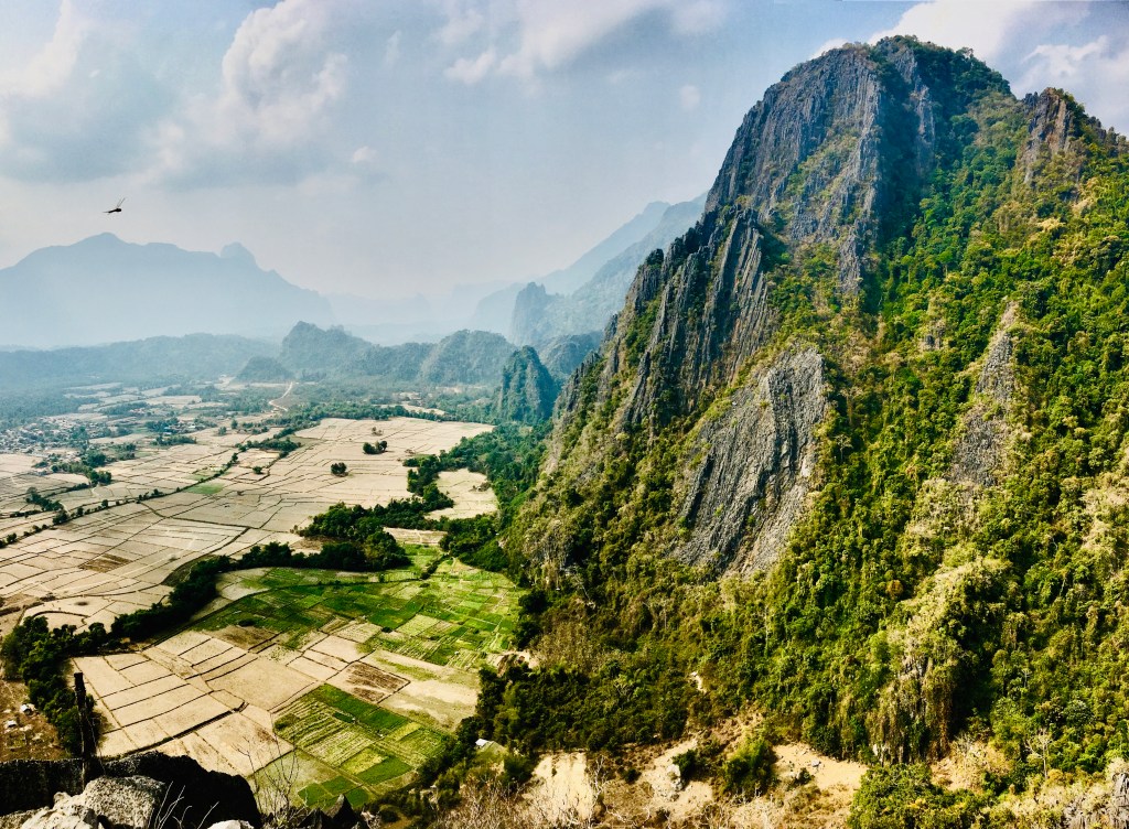 On Vang Vieng day three, Helen took some time out to do writing, so I set out to conquer Pha Ngern viewpoint after another delicious breakfast, this time with scrambled eggs!! The climb was tough in the heat and I hiked through humid forest, scrambling over boulders and tree trunks. The view from the top was pretty awesome and as the highest viewpoint in the valley, I could soak up the scenery (and wring out my T-shirt), without another tourist in sight. I returned to the Sae Lao restaurant for lunch, feasting on tasty stir fry. In Vang Vieng I got the impression that each viewpoint was owned by a separate community (same with the caves) so I decided to visit then all in order to share the love, especially as each point only costs 10,000 KIP (~90 p). This had nothing to do with me being a hiking maniac of course… So with my T-shirt only just beginning to feel dry (yes that’s gross) I ascended the silver cliff viewpoint in the company of a couple from Switzerland. It was also glorious. Starting to think I should have done a PhD titled ‘Views of Vang Vieng’.