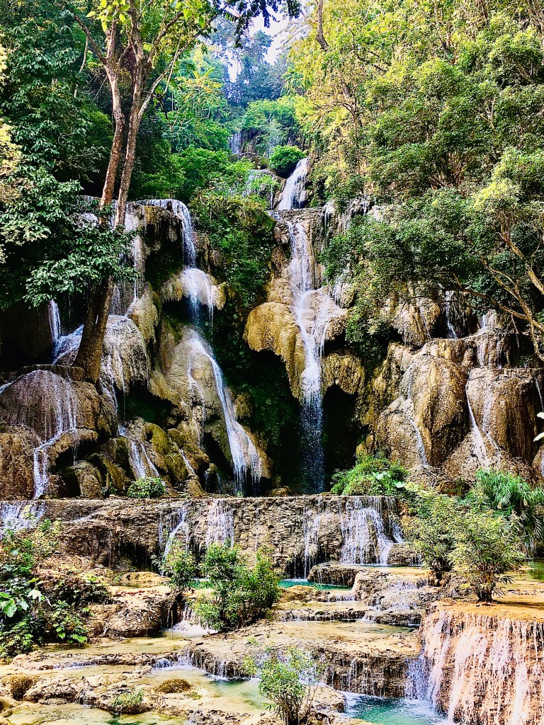 This morning we headed out to the Kuang Si waterfalls which are about 30 km from town. With pools to swim in and tiers of cascading falls they strongly reminded us of Erawan waterfalls in Thailand. They were stunning. We hiked up to the top of the falls, marvelling at their beauty. Whilst in the park we also visited the Tat Kuang Si Bear Rescue Centre (opened in 2003) which rescues Laos Moon bears from illegal wildlife trade and bear bile farms. There are currently 43 bears at the centre and they are now expanding. It was fantastic to hear about the work they are doing as part of the free the bears charity (which was founded in 1995 by an Australian, Mary Hutton). This afternoon? In all likelihood more temples beckon.
