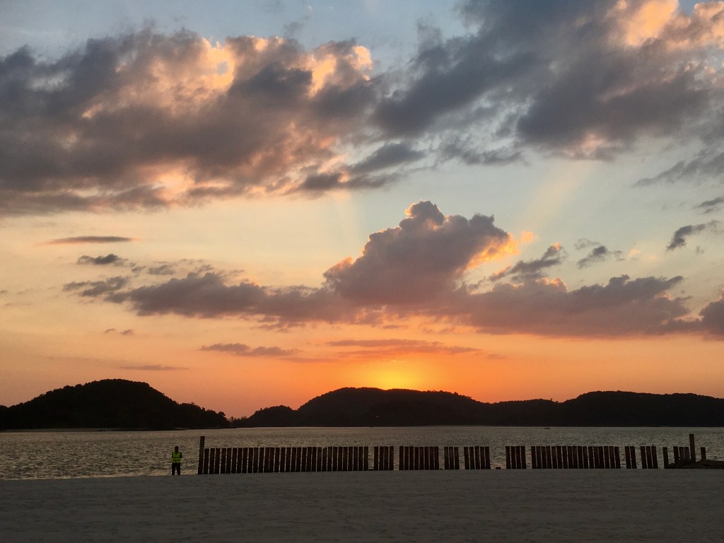 We woke in Langkawi and set out for a mangrove tour. We travelled by van to the Kilim Karst Geoforest park, located in the northeast of the island. The Tanjung Rhu river runs through the area and along with the many karsts and lush mangrove forests it made for stunning views as we zipped along in a speedboat. The park contains some of the oldest limestone (~500 million) in Malaysia and is brimming with life. We saw two species of eagle (White bellied sea eagle and Brahminy kite), fish farms (with tiger grouper, stingrays, a species of tuna fish and sea bass) and monkeys as well as many caves and karsts. One cave in particular (Kelawar) stood out because we got to walk inside and admire hundreds of bats sleeping just above our heads. After a relaxing afternoon we walked along the beach before dinner at the Thursday night market (luck was on our side with the dates). Two boxes of potato wedges, some tofu and chocolate coconut pancakes later we felt energised enough to catch the sunset (although we did miss the best bit…we may have got distracted by the food…). Nonetheless, with the temperatures dropping the evening beach walk was so peaceful with the sound of the waves lapping against the sand. The fire dancers also made for interesting viewing. Today (the 27th) more beach fun awaits. It has been an amazing first week in Malaysia and we are looking forward to more adventures.