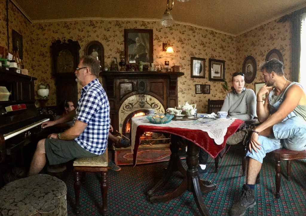 Saturday and the start of my final weekend in New Zealand. After another beach run we relaxed at the house, doing a few chores and reading by the fire. In the afternoon we went to Ferrymead Heritage Park, where Martin is a volunteer. We started by walking the Bridle path, which took us up a steep hill with great views over Christchurch. Then it was back to the park for tea and gluten free profiteroles in a Victorian style living room. We sat by the fire feeling dozy after the walk. Martin and I then had a look around the park, which has a great collection of trains, old fire engines as well as Victorian styled shops, gardens and railway stations. It was awesome and another great thing to have done in Christchurch. The evening was finished with another dinner cooked by our resident French chef. Can’t complain…